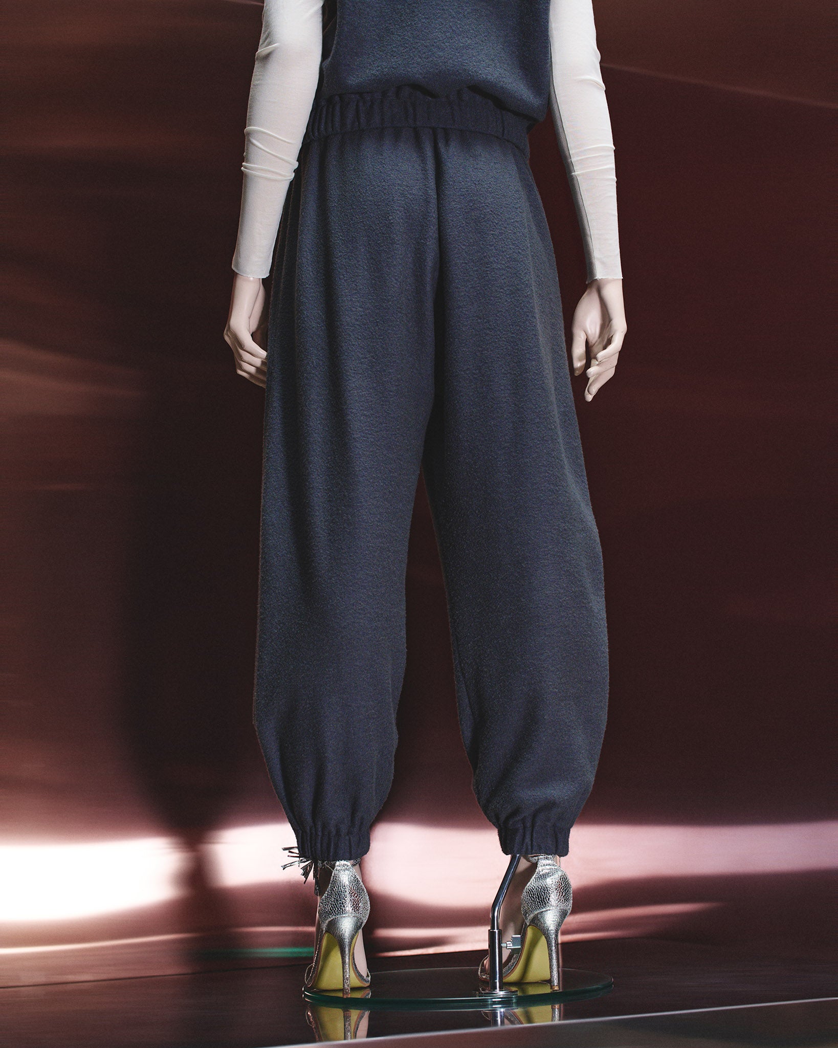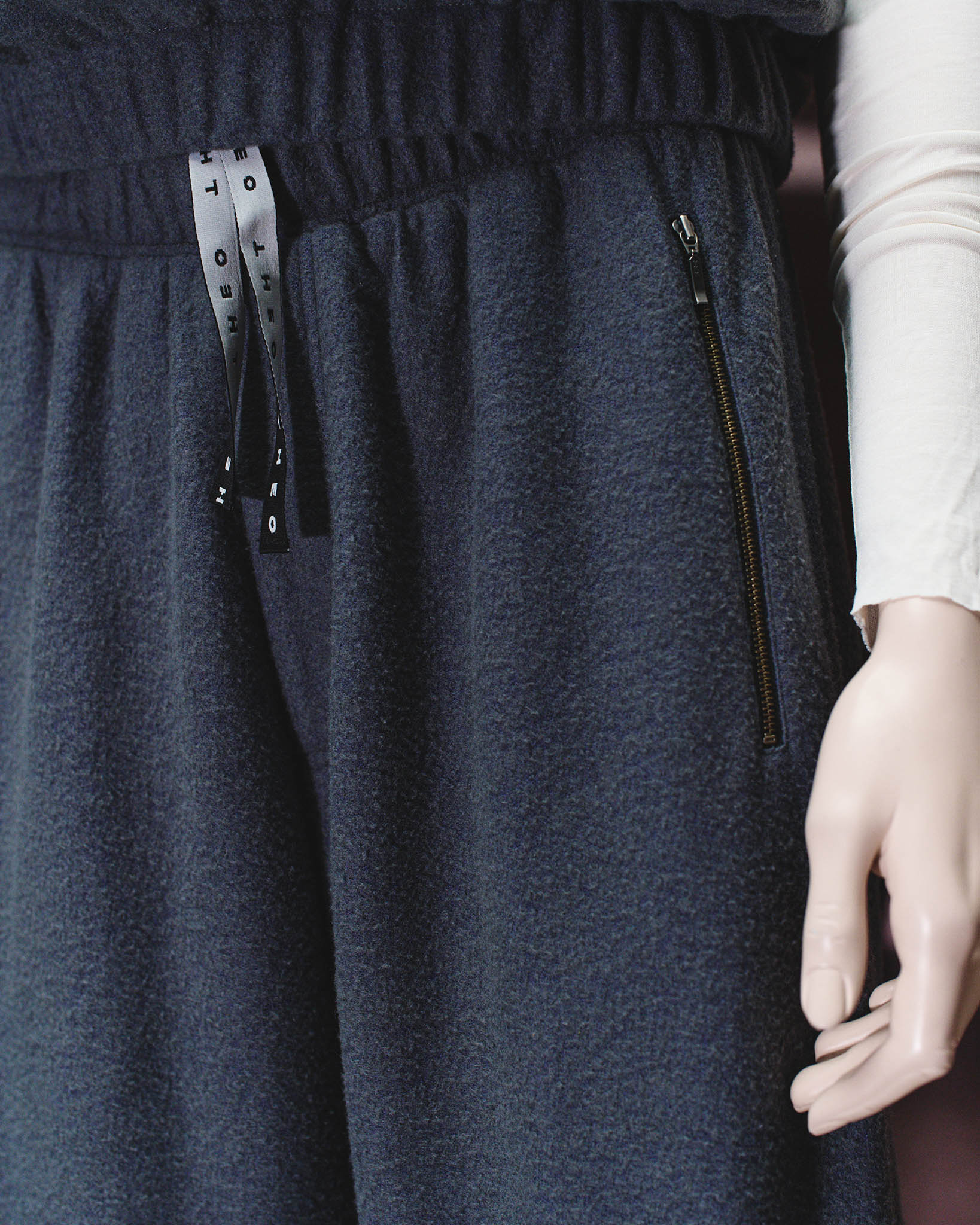 The Tapered Jogger redefines casualwear with a focus on elevated materials and considered details. Constructed from the same soft Japanese woolen blend as its companion vest, these mid-rise pants are fully lined for exceptional warmth and a smooth, comfortable feel. The relaxed, tapered silhouette is refined with functional elements like secure zip pockets and zippered ankle cuffs, making them a versatile foundation for both leisurely and styled looks.
